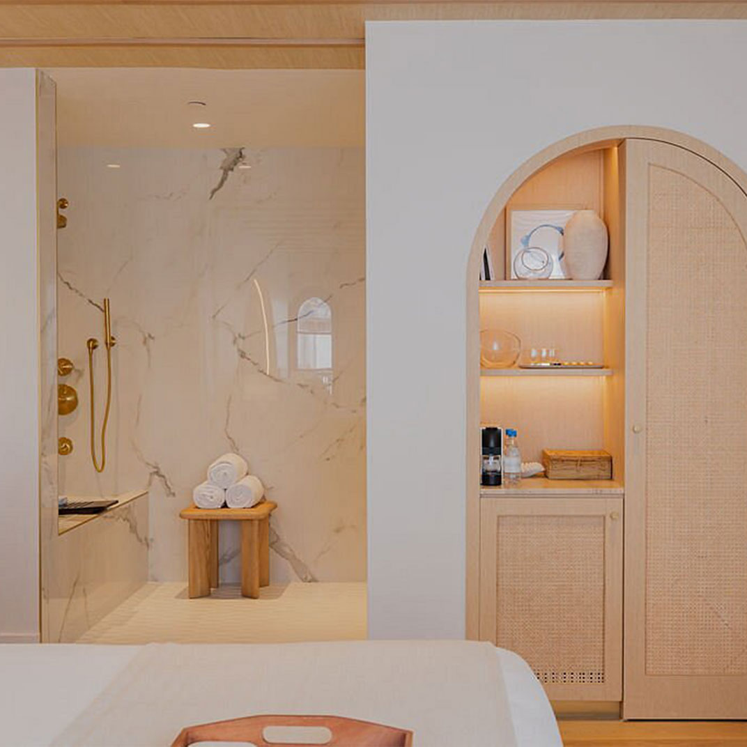 Just off the main drag, Donatella Boutique Hotel offers space to recharge without losing the city entirely. Suites are spacious and softly detailed, with warm tones, textured finishes, and classic design cues. Some include terraces, others have extra living areas, but all are built for easy, private stays. A light continental breakfast is included, and while the location keeps you close to Miami’s energy, the pace inside slows things down, made for pausing between the beach, the buzz, and whatever else the day brings.