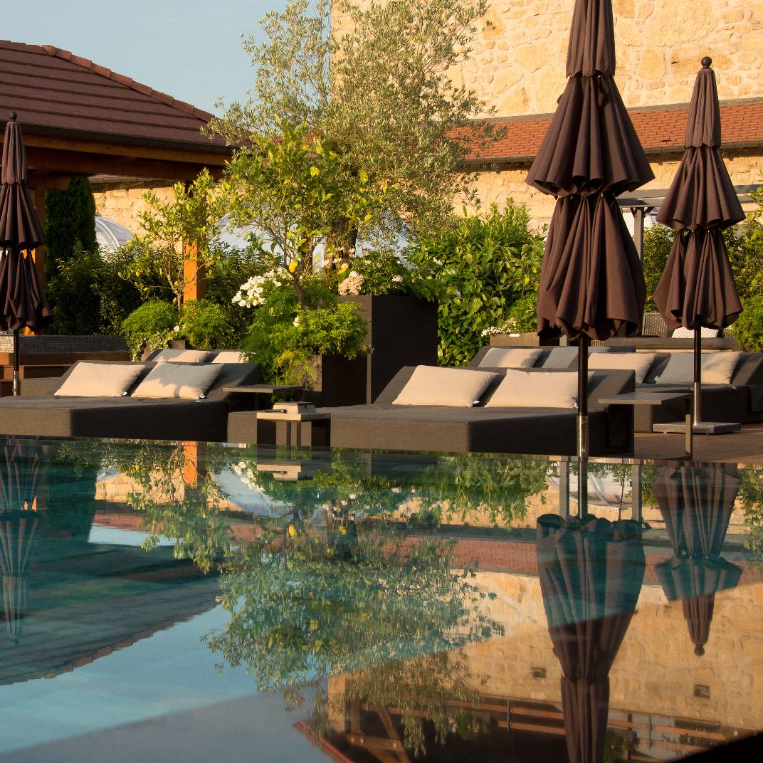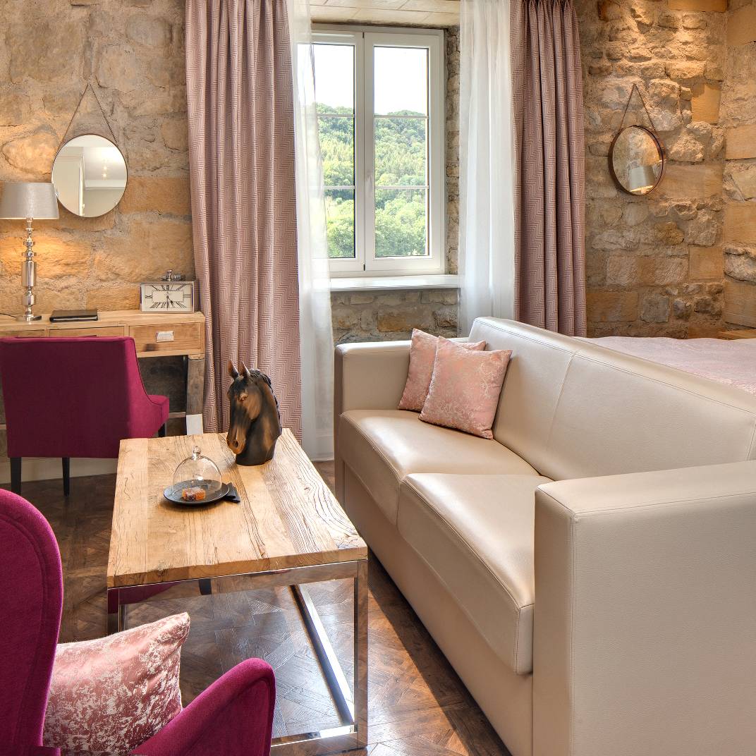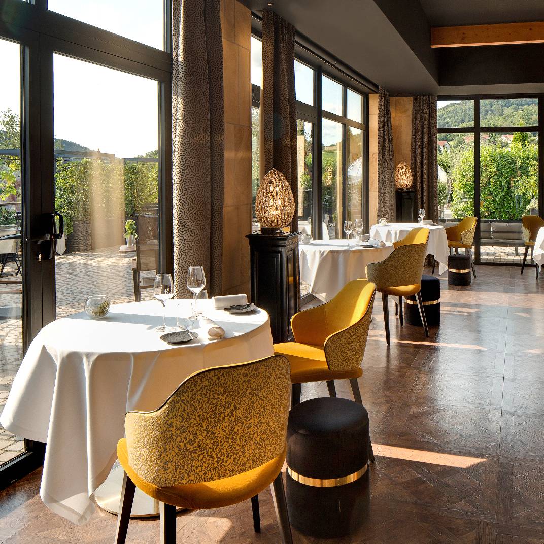 This is France, yes, but this corner of Lorraine, mere minutes from the point where the borders with Germany and Luxembourg meet, has a character all its own. And the same can be said of Le Domaine de la Klauss, whose rough-hewn stone walls put one in mind of a medieval fortification, but whose modern-luxe interiors and five-star services make it anything but forbidding.