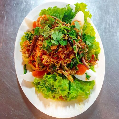 Having clocked up over 50 years, this enduring favourite remains a top spot for flavour-packed Isan fare in Korat. The tender grilled chicken – crisp-skinned and marinated to perfection – is a must, pairing well with the fiery som tum made with their own fermented fish sauce. The menu also features korat noodles, tom sap and well-charred meats. Suitable for friendly gatherings or even just a quick stop, there's plenty of seating both indoors and out.