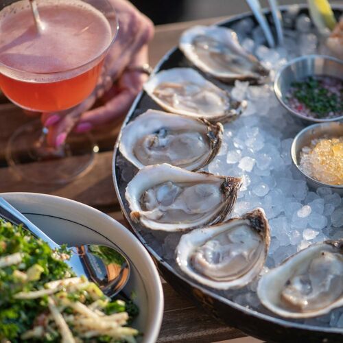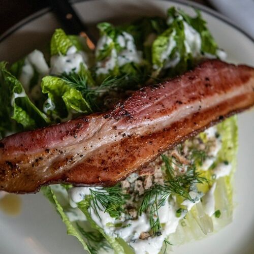 Start things off with a house spritz or a sip from the eclectic wine or cocktail list. The menu is small and focused; the cooking classic and comforting. But first, start things off with such familiar items as a dry-aged burger enrobed by melted American cheese and served with cottage fries to French onion soup with that trademark bubbly and dark golden cheese top.