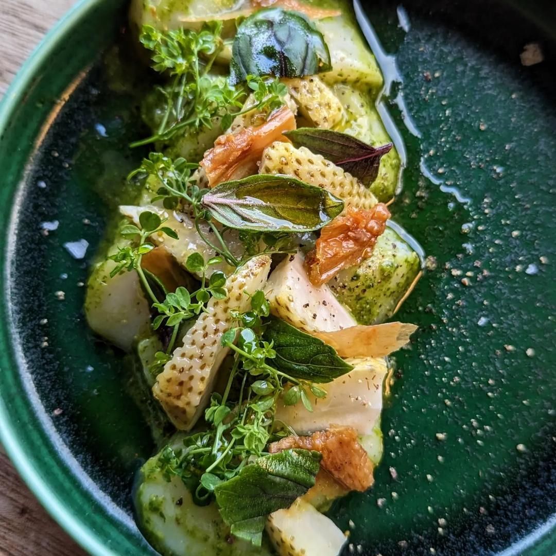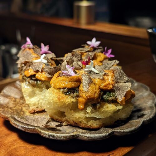 This high dining, hyper-sustainable operation is proudly unbound by tradition. The space is quaint and deviates from the blonde-wood minimalism so prevalent these days. Instead, find hues of cerulean blue and a counter made from a tree. The à la carte menu showcases this restaurant's sourcing philosophy. In terms of cuisine, it's pure contemporary elegance, as seen in shrimp nigiri that's first cured, then seared until it curls into the rice and finished with shrimp head-chili oil. End with amazake, presented as a porridge with white peach-nectarine jam. The impressive wine list sources from the North Fork and West Coast.