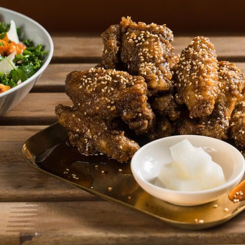 Asian cooking with Korean leanings is what this team does best, so await—with bated breath—the likes of piping-hot fried chicken, its crisp amber skin and ivory meat permeated with sticky-sweet black pepper soy. Fried rice, that ubiquitous menu favorite, is studded with Chinese sausage, tobiko, and kimchi, and finished with a runny fried egg for a delicious dish.