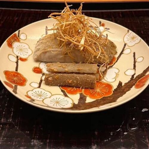 Sui Oya respects old-school workmanship while mixing in some clever touches. Appetisers are garnished with charming flower arrangements: a ring woven from cogon grass; chrysanthemum covered with silk wadding. Grilled items come with a medley of raw seven-spice or shibazuke for a unique flavour. At dinner, side dishes such as oysters, eel or beef can be selected. Crockery, an assortment of antiques and works by modern artisans, sets off each dish. With versatile imagination and presentation, Sui Oya is a fresh breeze reinvigorating Japanese cuisine.