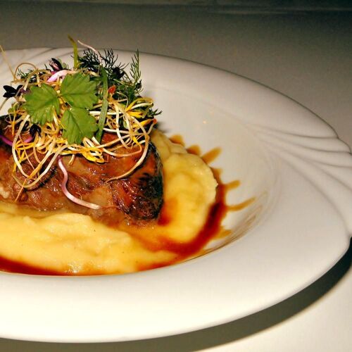 This restaurant’s warm, elegant and rustic atmosphere with wooden furniture and exposed beams provides the setting for its seasonally inspired, regional cuisine. The experienced owners are welcoming and attentive, while the menu features specialities such as frogs’ leg and courgette flower risotto.