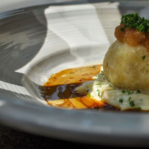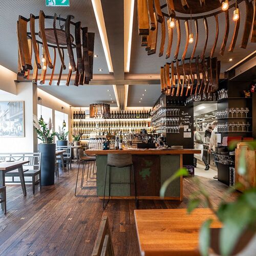 Gerhard Fuchs and Christian Zach opened this tavern as a counterpoint to their fine dining restaurant. Serving seasonal dishes made with regional produce, the concept has proven to be a hit. Gerhard Fuchs brings many years of culinary experience to the table, and the team led by passionate sommelier and host Christian Zach provides attentive service with Styrian charm. Flavoursome dishes such as Leutschach pata negra pork brisket with chanterelle mushrooms and gnocchi with herbs can be accompanied by wine – the list comprises over 4 000 labels – or beer. The interior design is a modern take on rustic style, and there is also a lovely vine-covered terrace. Tip: Due to the popularity of this place, reservations are recommended. Delicious food items and wines can be purchased to take home. The name "Weinbank" is apt: you can hire lockers in which to store your fine wine purchases.