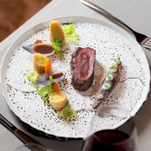 Directly overlooking the lake and just a stone’s throw from the pedestrianised area, this restaurant boasts a spacious dining room with breathtaking views and a convenient terrace at street level which is ideal for alfresco lunches and dinners. The cuisine focuses on generous dishes inspired by local traditions with an emphasis on meat, although fish (from the nearby lake but also from the sea) also features on the menu. Children’s portions are available, while the wine list offers a good selection of carefully chosen Slovenian wines if you want to order a glass of wine with your meal. Our favourite dishes included the porcini “cappuccino”, the river trout with potato salad and, for dessert, the famous cream millefeuille (a Bled speciality).