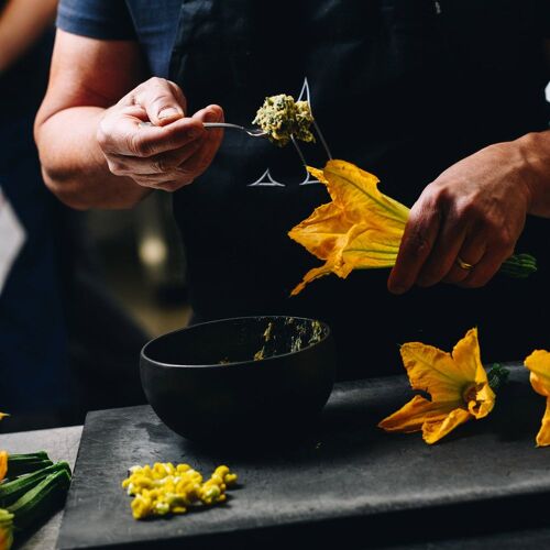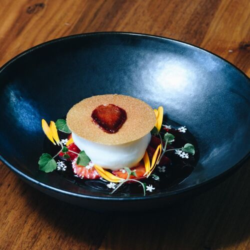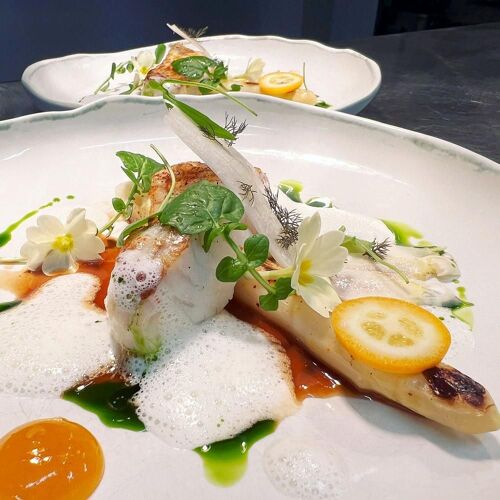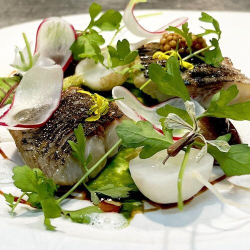 According to legend, bear’s garlic, a.k.a. as wild garlic or allium ursinum, starts to sprout at the same time as the brown bear leaves its lair after hibernation. After their winter fast, the hungry bears devour the young leaves, hence the name of this plant that has come to symbolise strength and fertility. Frédérique and Lionel Hénaff have opened the restaurant of their dreams outside Quimper’s town centre in a bid to celebrate Brittany’s gourmet produce. Seafood occupies a star role in their appetising cast, including scallops from the Bay of Morlaix and abalone. The chef’s inventive cuisine, firmly anchored in nature, boldly blends a profusion of ingredients, among which herbs and flowers, with a weakness for light foamy siphoned sauces. A tasteful, elegant vibe sets the scene in the dining room, which also offers a handful of seats at the counter facing the open kitchen. The best of Brittany: what’s not to like?
