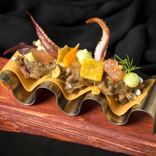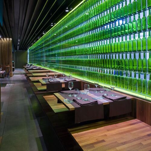 Another Idoate family venture that has added an exciting new twist to Pamplona’s restaurant scene with this fun new premises on the corner of a market in the centre of town. It features a cutting-edge design, its own independent entrance and two distinct spaces: a modern lounge-bar serving highly elaborate “pinchos” that seek to take Basque tradition to a new level; and a dining room with low tables (choose between the à la carte and a menu) where diners can enjoy traditional cuisine with an Asian touch (one dish we particularly enjoyed was the grilled sea bass with a seafood cream). The natural light flooding in from the street is filtered by the countless bottles of wine that form part of the façade.