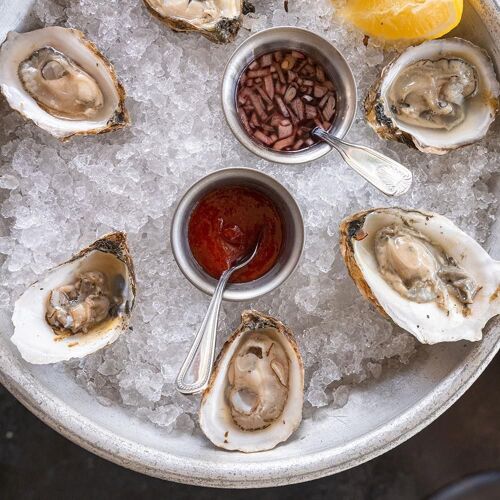 Once a 1930s gas station, this refitted space is retro-cool, thanks to warehouse floors, comfy booths and floor-to-ceiling windows. Standing under a vintage marquee that lists the day’s bivalves, chefs may be found shucking for a crowd that gets louder as the night moves on. Guests can make an entire meal out of oysters, but fantastic small plates, like the smoked fish dip served with buttered saltines or mussels cooked in a spicy tomato sauce, are entirely worth an order. Key lime pie is a sweet send-off.