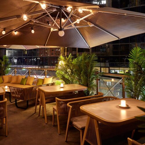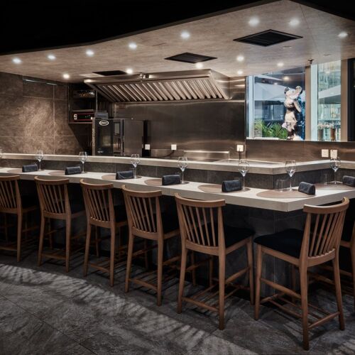 This compact joint offers two seating areas – the counter overlooking an open kitchen serves a 10-course season-driven tasting menu that melds Japanese flavours with European techniques; the terrace serves upmarket steakhouse favourites like Wagyu sandwich, caviar with blinis, and truffle fries. Butter-aged lobster seared on a lava stone is velvety and flavoursome. Roast three-yellow chicken in a vin jaune sauce is ideal to share and worth pre-ordering.