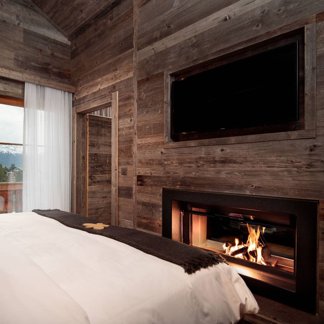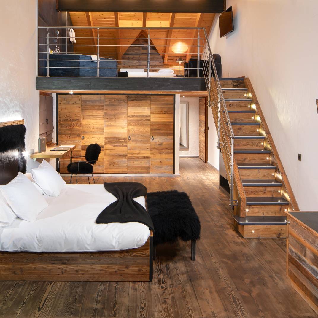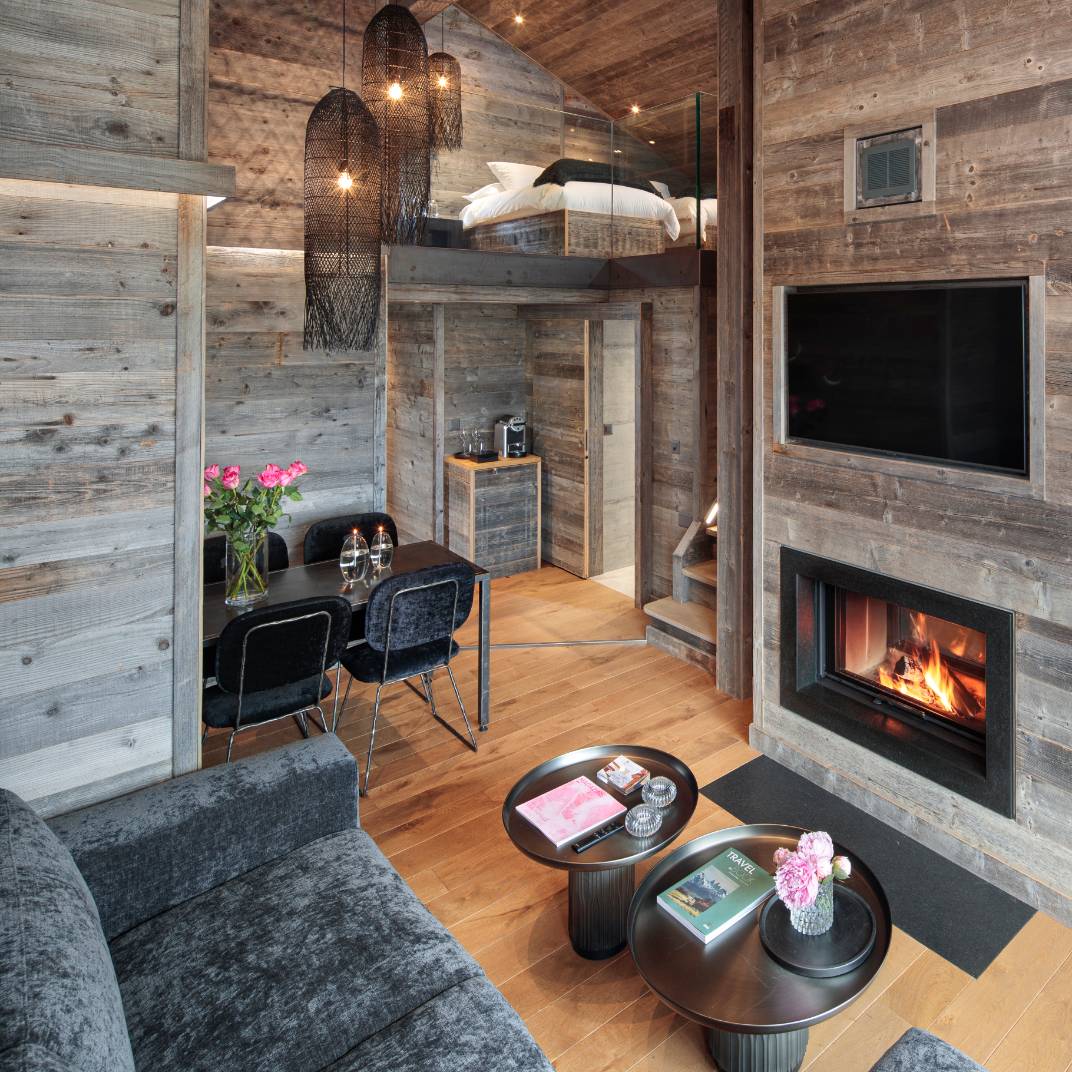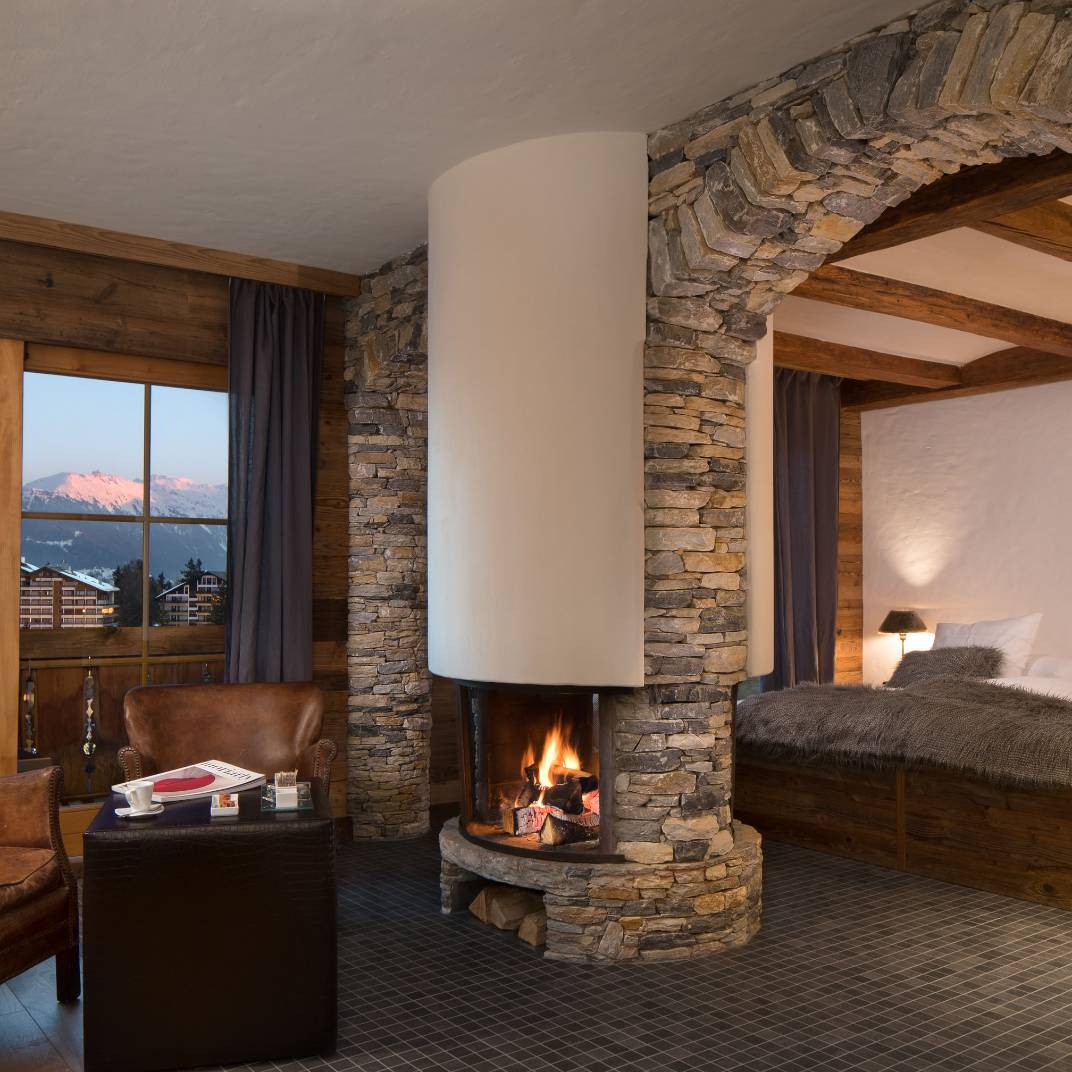 At first glance the Hostellerie du Pas de l’Ours could hardly look more traditional, its weathered, rough-hewn wooden structure standing atop even rougher stone foundations. Inside, however, it’s a different story, its wood-paneled weightiness lightened by crisp contemporary design and high-tech modern comforts. The L’Alpage Spa offers the full complement of restorative treatments, including an indoor pool that, weather permitting, opens to the Alpine air. And two restaurants serve the Hostellerie’s guests: the Michelin-starred fine-dining L’Ours and the more rustic Bistrot des Ours, both under the direction of chef Franck Reynaud.