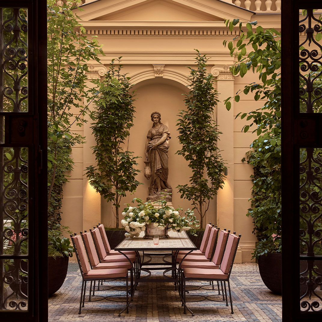 The result is a series of spaces quite unlike any other, from the warm and eclectic rooms and suites to the sumptuous and softly lit common areas. Plenty of original architecture remains intact, giving Sir Prague a visual depth that’s unmistakably authentic. Seven North, the hotel’s restaurant, serves Mediterranean fare in the building’s central courtyard and an adjacent dining room.