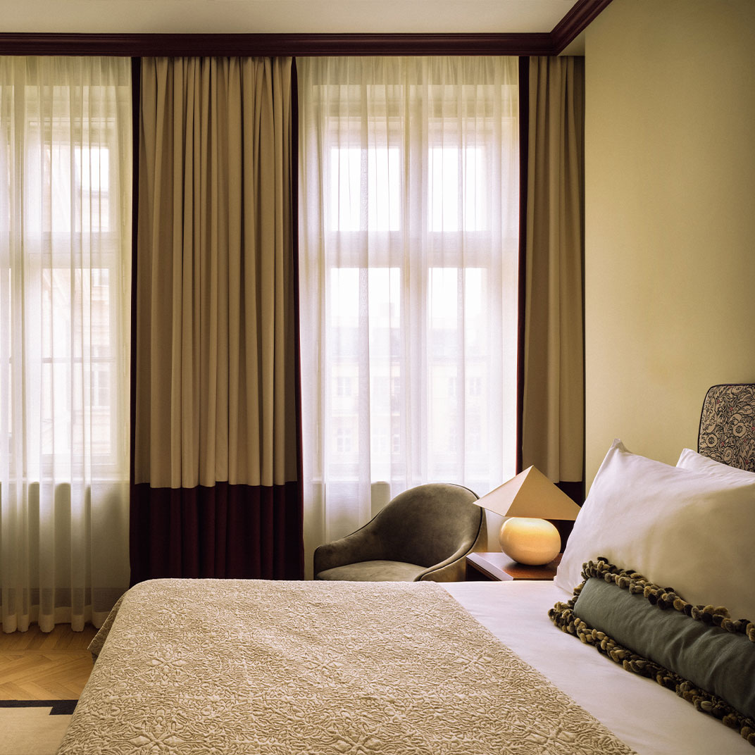 A well-preserved 19th-century building next to the Vltava River and Frank Gehry’s Dancing House contains one of Prague’s most unique boutique hotels. In contrast with the early days of design hotels, when international minimalism ruled, Sir Prague is the work of Linda Boronkay, who drew inspiration from the city’s Gothic architecture and the heritage of Czech Cubism.