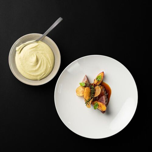 Imagine crispy, yet tender pigeon breast, flanked by legs cooked in a foie gras preparation, all of which in a full-bodied jus overflowing in gutsy flavour. Such dishes are emblematic of Florence Porignon’s culinary flair. After honing her skills in top establishments, Ms Porignon’s distinctive signature shines through in a modern repertory, which hits the spot every time and is depicted by a delicate touch that enhances knockout flavours.