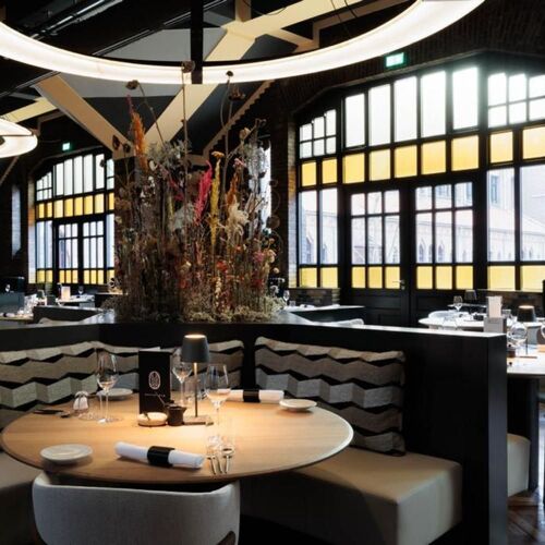 The Goyvaerts brothers welcome diners to the imposing Domusdela, a converted monastery church in the heart of Eindhoven. Steeped in history, this splendid setting is replete with Scandinavian accents; high ceilings and architecturally striking walls lend the space a sense of grandeur. The wine cabinet is an eye-catching feature. Characterised by bold flavours and refined details, the dishes pack a punch, and their presentation is always carefully considered and precise. Take, for example, the entrecôte and stewed Dutch beef, accompanied by both a parsnip purée and a parsnip sauce enhanced with coffee, souffléed potatoes, caper leaves and a herb cream. Elegance meets culinary ambition at Goyvaerts.