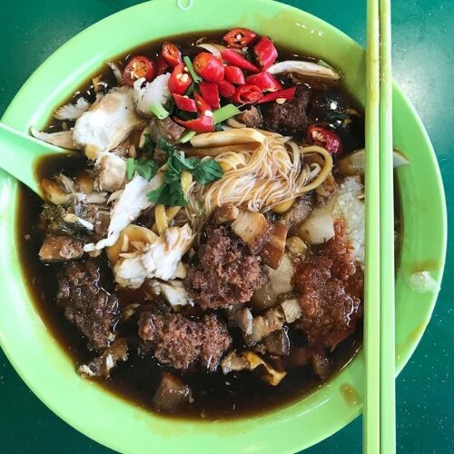 This popular stall offers lor mee with generous toppings like meatballs and fish flakes. The noodles are springy and the broth is tasty and flavoursome. Also, try their deep-fried prawn rolls with a crispy skin and juicy filling.